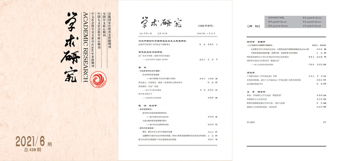 地址:广州市天河区天河北路618号广东社会科学中心B座7楼学术研究杂志社